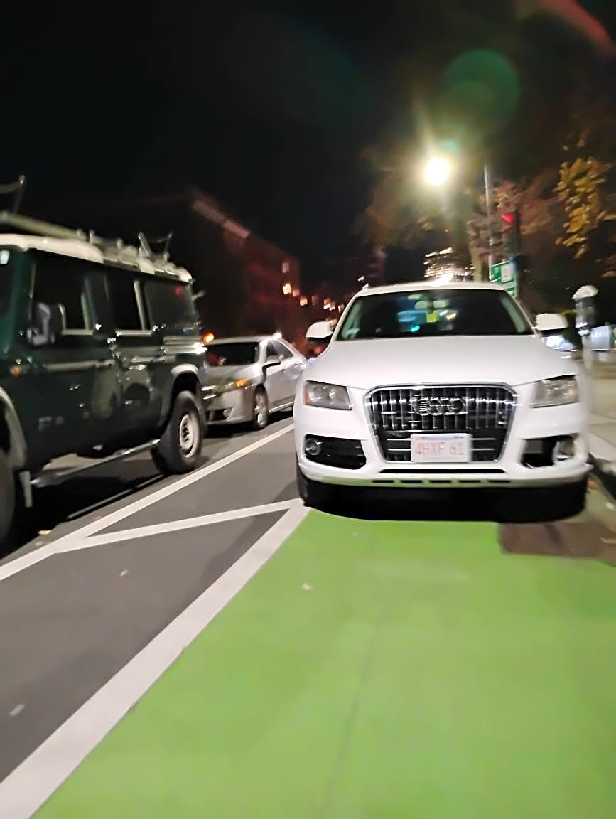 100 102 Beacon St, Boston, Ma, 02116This car is Parked on this same spot since yesterday, had no resident permit, parking on the bike lane blocking the way for bicycles