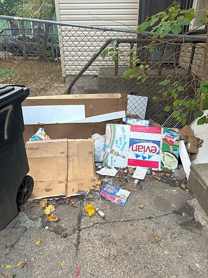 97 B Calumet St, Mission Hill, Ma, 02120Property manager of 97 Calumet Street has not cleaned up shared trash area and driveway after months of requests. Piles of trash have attracted many rodents and broken glass in driveway is a safety hazard. Originally reported this issue in October 2025 and manager has claimed it has always been too rainy or cold for anyone to do this work. I previously filed this case, but they went to the wrong address to investigate.