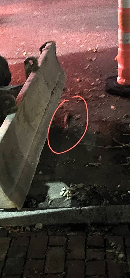This is so disgusting. I can see a bunch of rats running around everywhere. Got a couple pictures. The first one is under the construction equipment right in front of 58 East Springfield. A bunch running across the road under the cars on the odd side. There are some running in and out of the bushes in the tree in front of 57 East Springfield as well.
