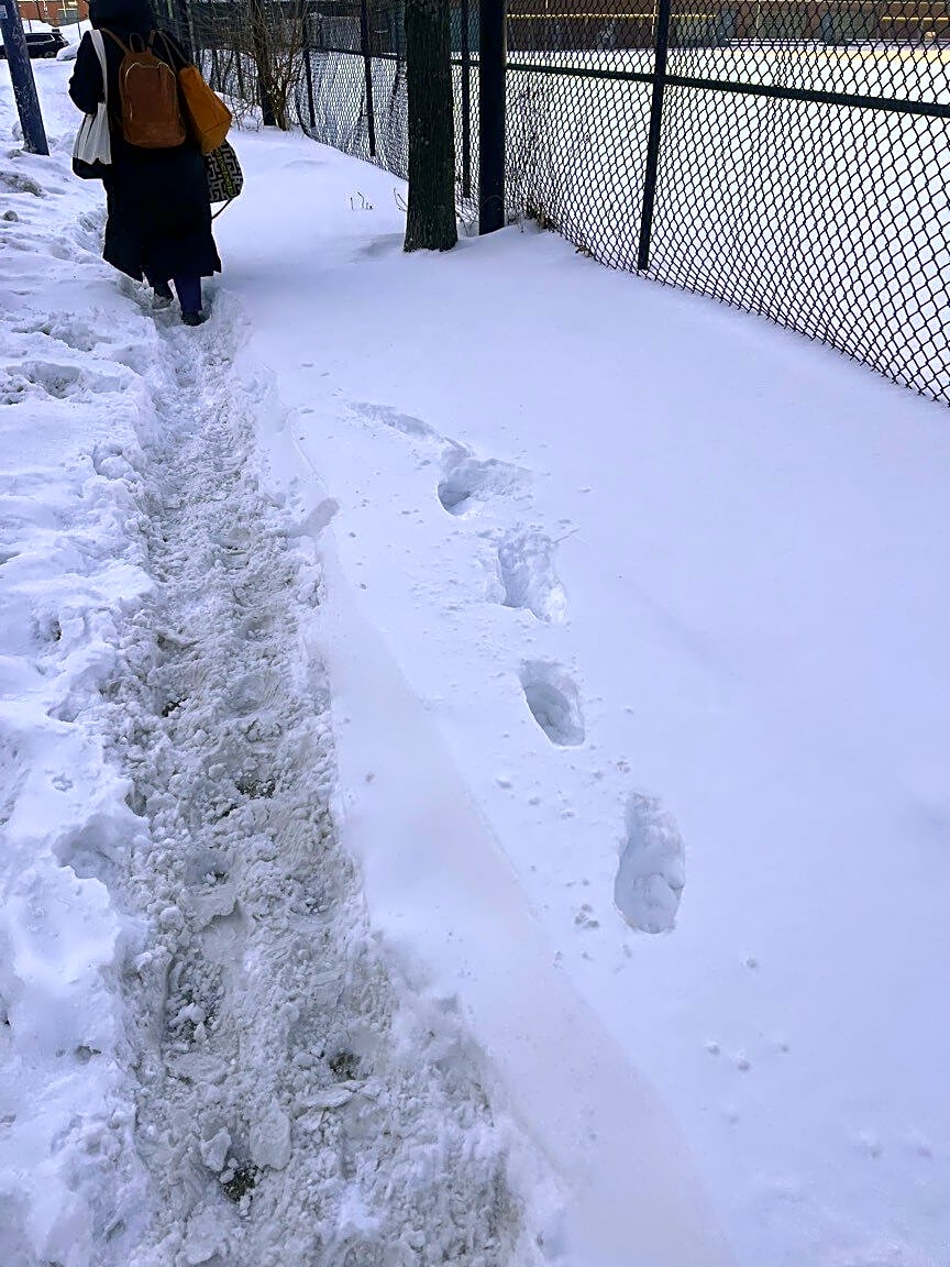438 Main St, Charlestown, Ma, 02129The snow is not clear for people walking from Baldwin St to the crosswalk to hood park.