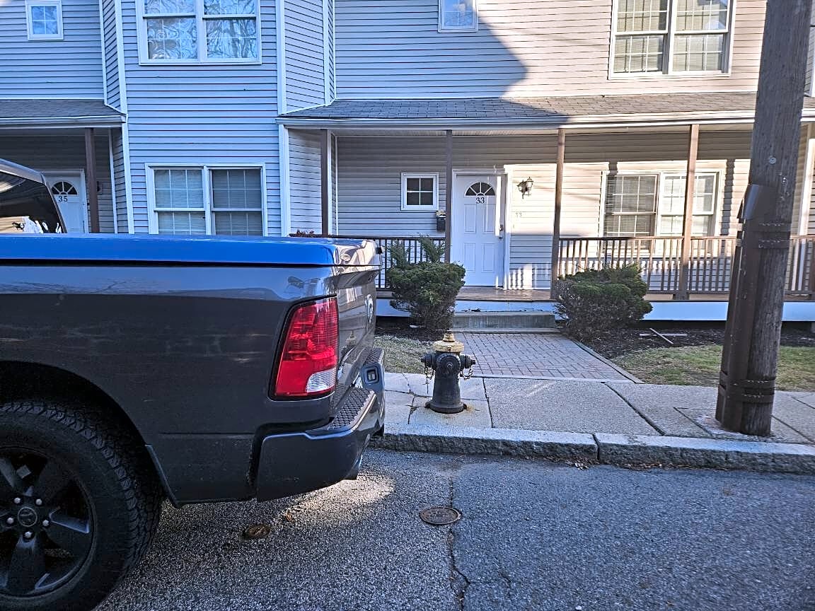 Intersection Of Sprague Pl And Sprague St, Hyde Park, MaRed Pick Up truck blocking a fire hydrant daily.