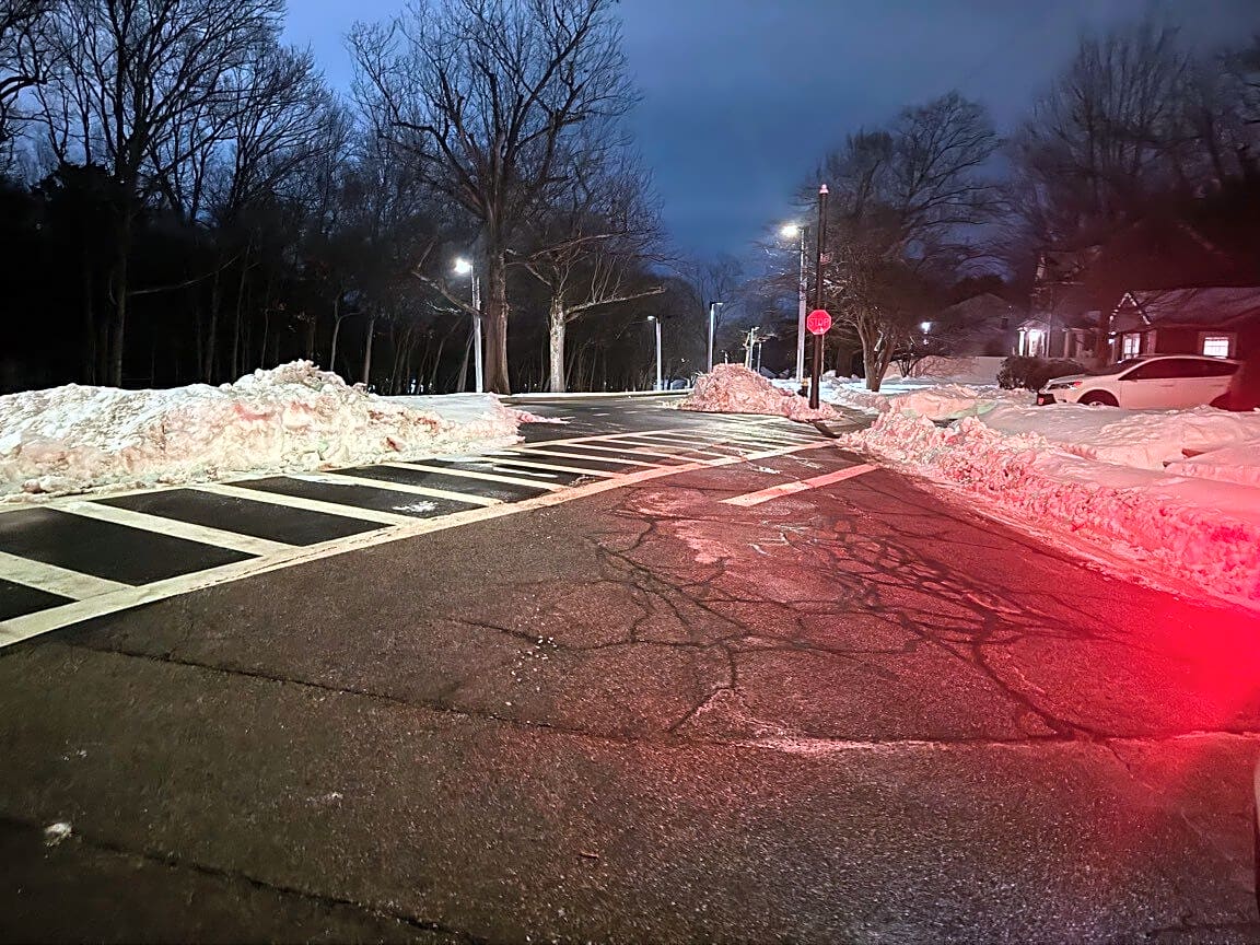 Intersection Of Rosemere Ct And Florence St, Roslindale, MaCar parked wrong way IN the street. Ticket. Shes going to get hit by a plow.