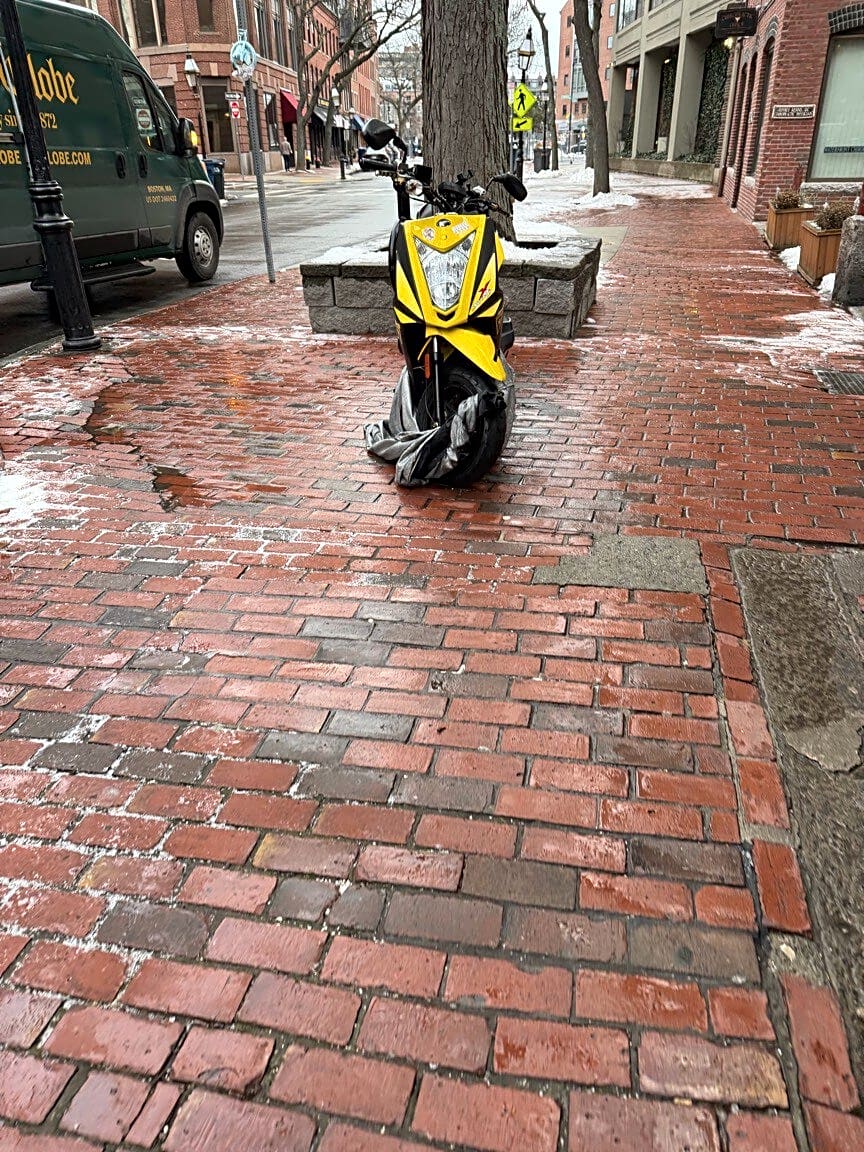 179 Commercial St, Boston, Ma, 02109Motorcycle chained on sidewalk all winter