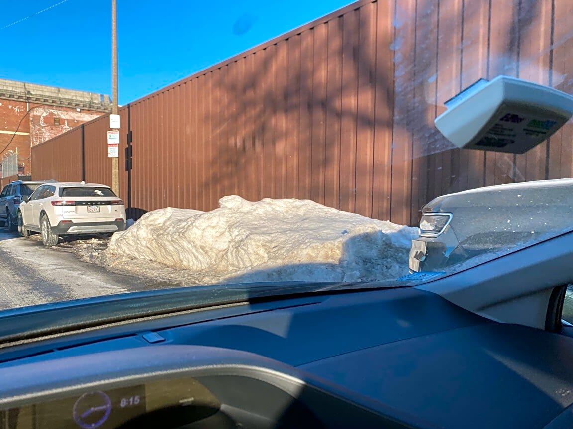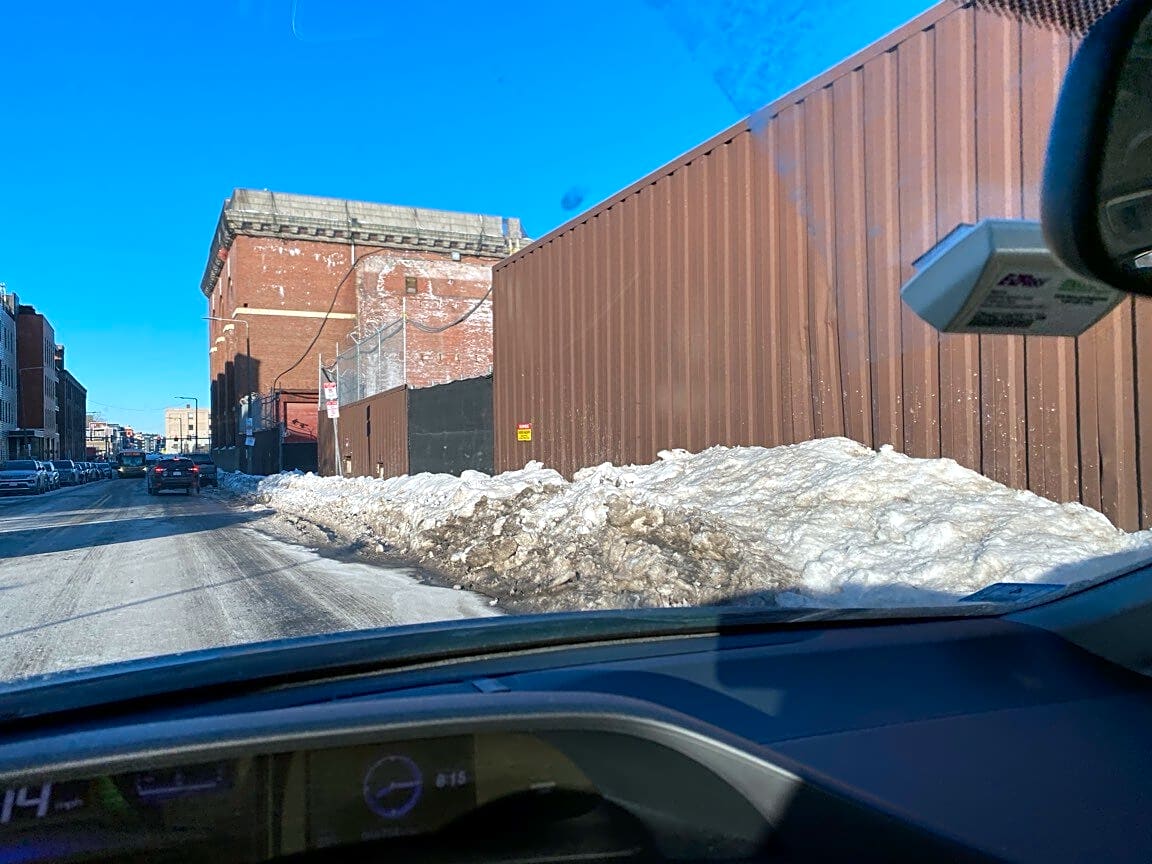 Intersection Of M St And E First St, South Boston, MaE 1st st needs snow removal. Parking spots completely blocked.