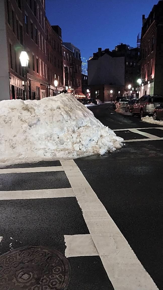 Intersection Of Fleet St And William F Mc Clellan Hwy, Boston, MaSnow pile obscuring 2 crosswalks and ramps at the corner of Fleet and North St