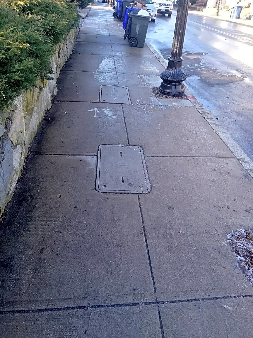 Intersection Of River St And Linwood St, Hyde Park, MaUnshielded Icy walkway