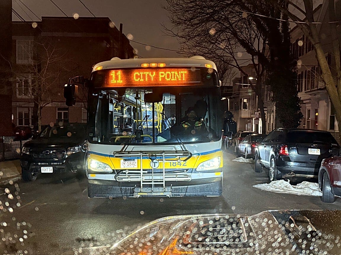 224 W Seventh St, South Boston, Ma, 02127The bus stopped in the middle of the street blocking traffic despite having a clear path to the bus stop and started letting people out in the middle of the street.