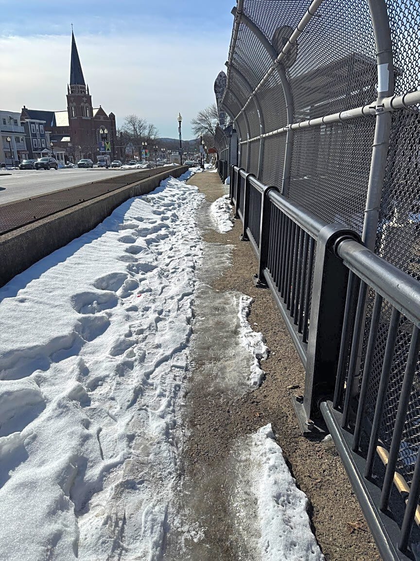 Intersection Of Woodhaven St And Culbert St, Mattapan, MaShovel and salt the bridge in front of the blue hill commuter station