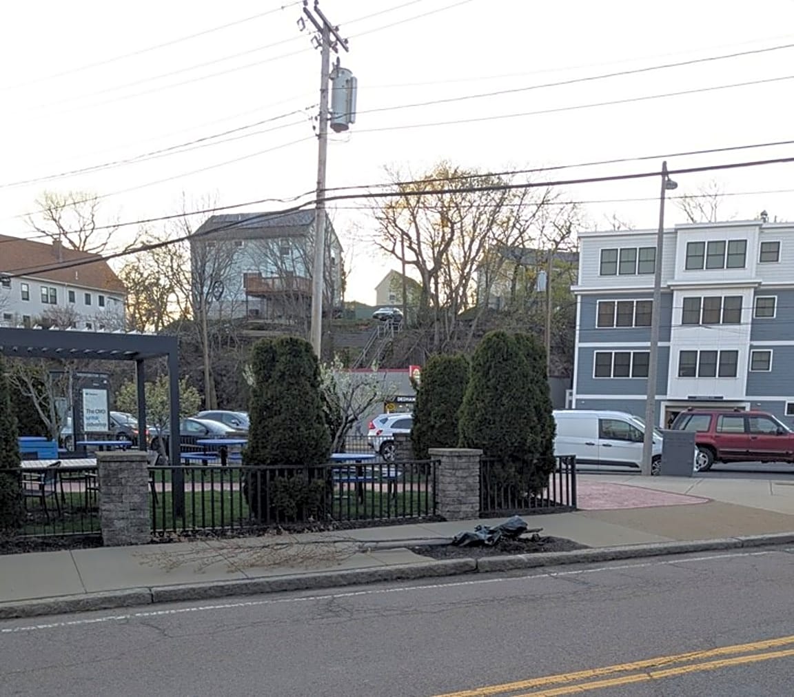 15 Radnor Rd, Brighton, Ma, 02135Empty beers cans all over the front grass. There is also a green snow shovel tossed in the small tree in front of porch