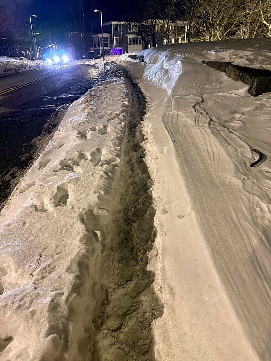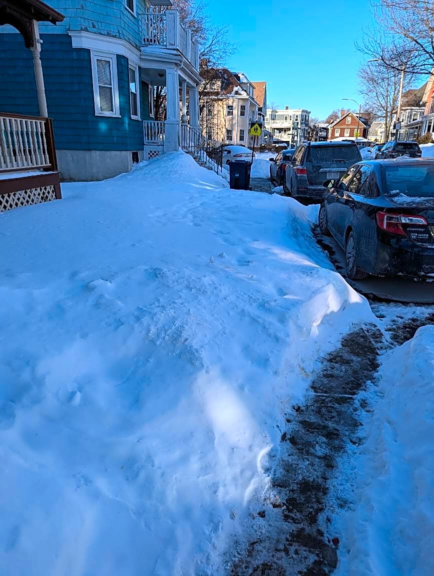 Intersection Of Call St And Mcbride St, Jamaica Plain, MaSidewalk blocked by snow