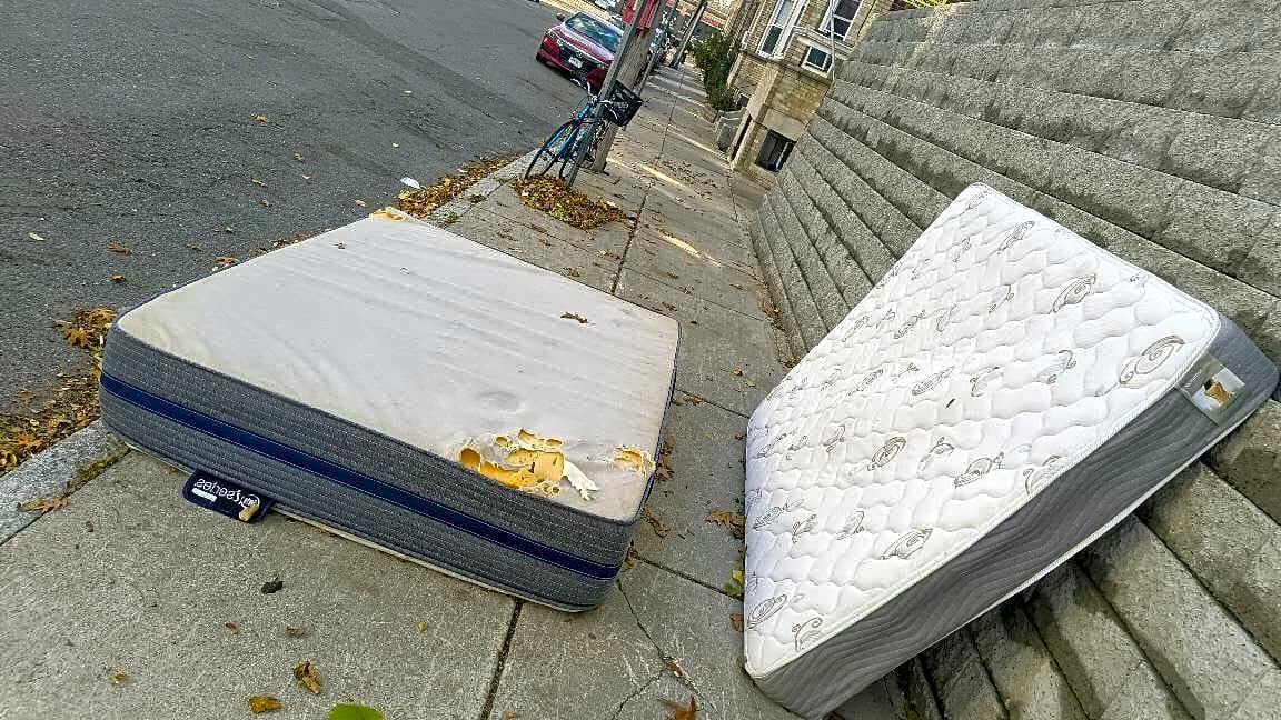 Intersection Of Ransom Rd And Colborne Rd, Brighton, MaTwo large mattresses left on the street on Colborne Road in Brighton