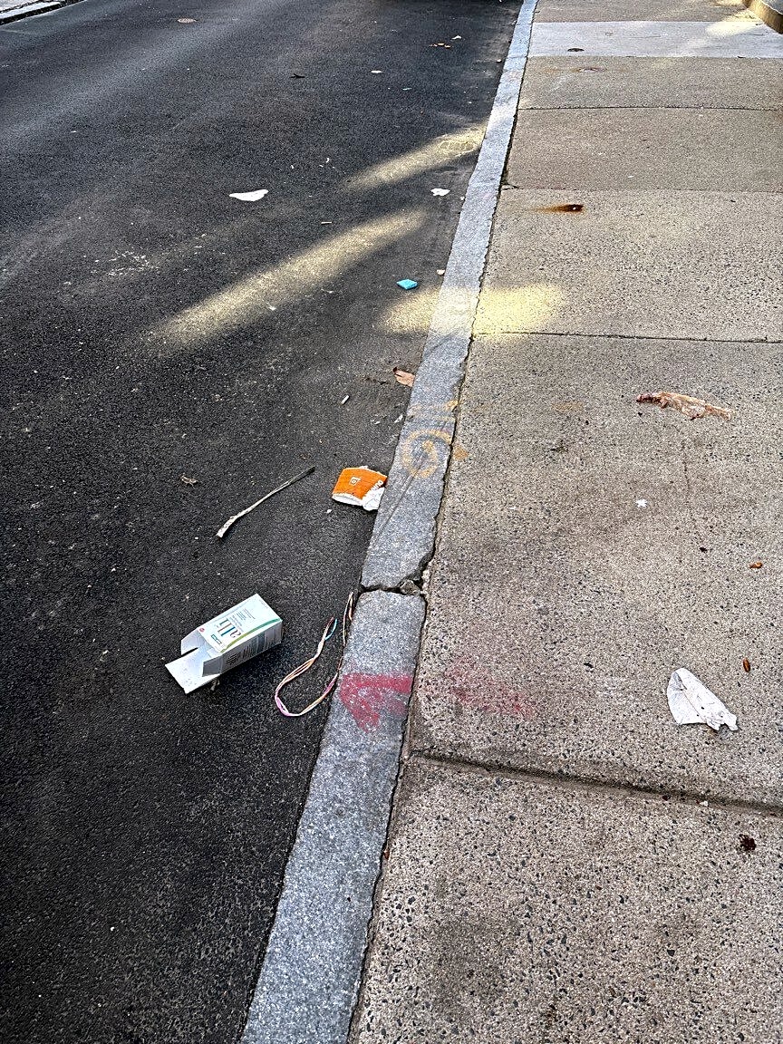 19 Sheafe St, Boston, Ma, 02113Trash all over the sidewalk and the street.