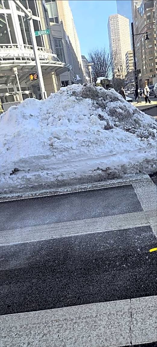 Intersection Of Belvidere St And W Newton St And Huntington Ave, Boston, MaCannot cross crosswalk because of a big snow mound in the way