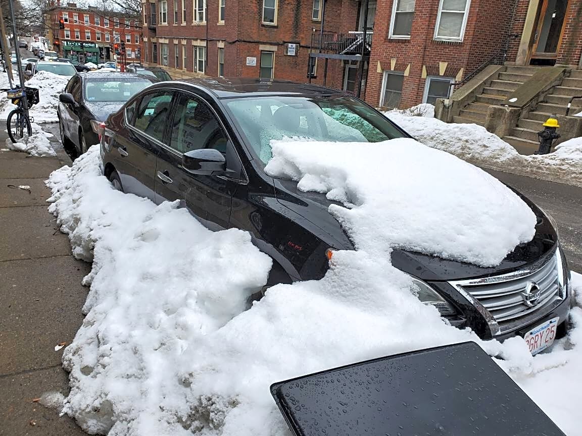 Intersection Of Cambridge St And Brighton St, Charlestown, MaLarge snow pile blocking cross walk