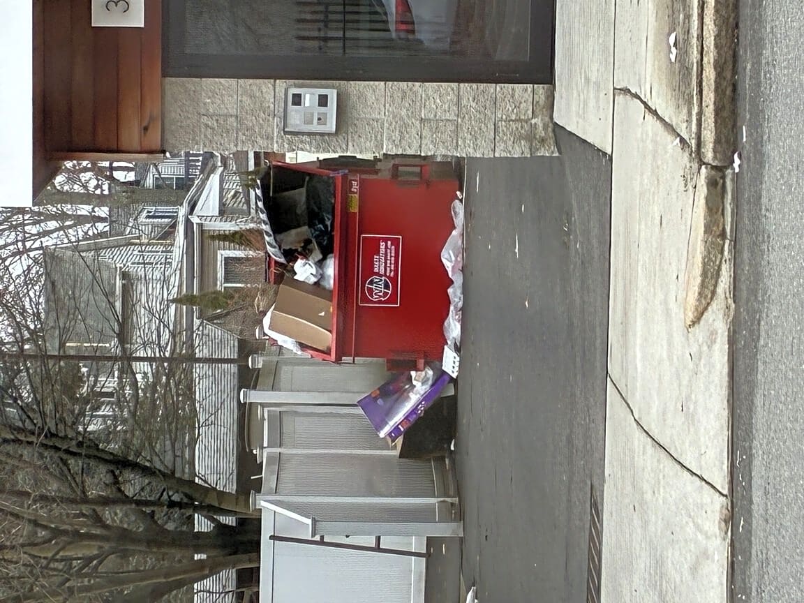 312 Spring St, West Roxbury, Ma, 02132312 Spring St. has a disgusting, overflowing dumpster (as usual). Please ticket or do whatever useless this that the city does about this ongoing (for years) issue at this property.