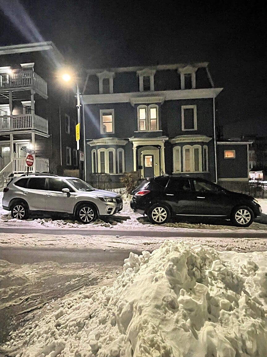 9 Savin Hill Ave, Dorchester, Ma, 02125Parking lanes completely piled with snow. Cars unable to park.
