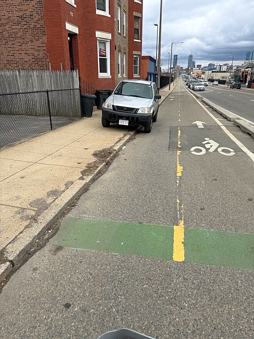 1285 1291 Massachusetts Ave, Dorchester, Ma, 02125Moron parked in the bike lane right near Home Run Cafe on Mass Ave. give em a ticket and make the city some money. Unacceptable