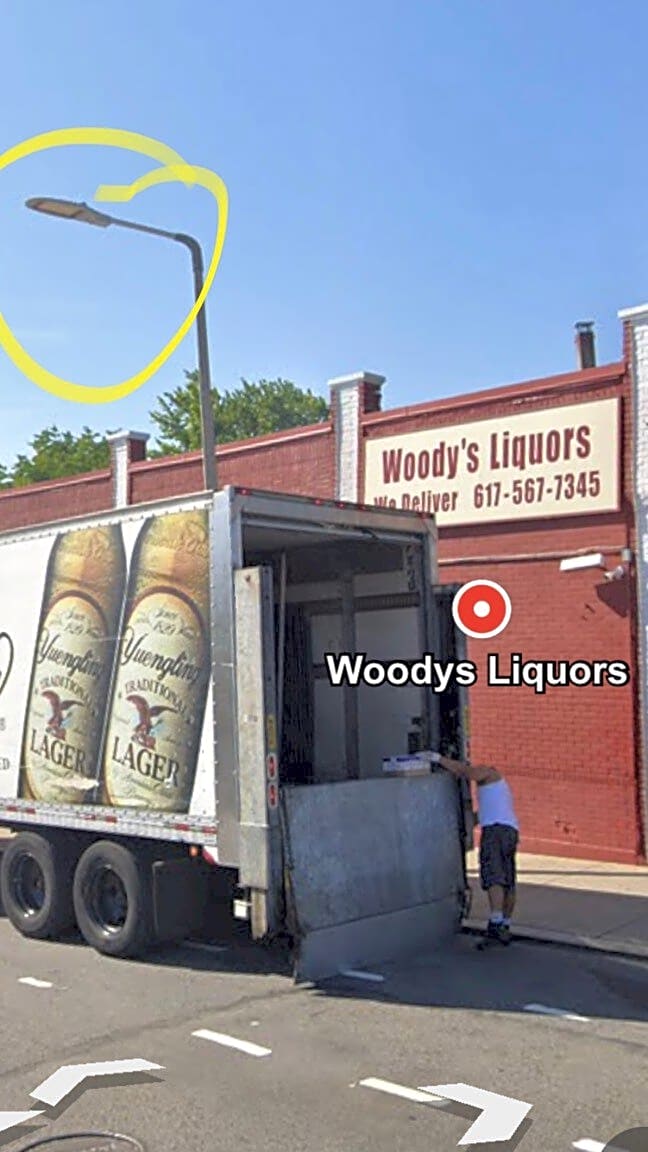 Barnes Ave & Saratoga St1035 Saratoga st. Woodys liquors. Street light out