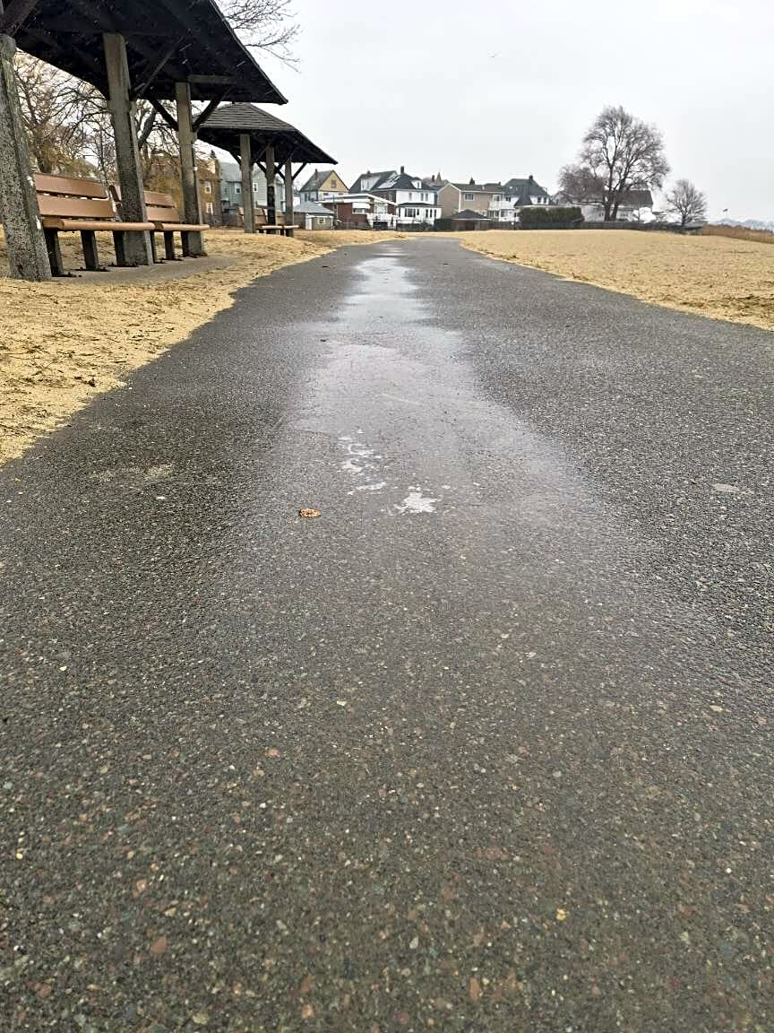 Intersection Of Barnes Ave And Constitution Bch, East Boston, Mafell on black ice. need salt on constitution Beach