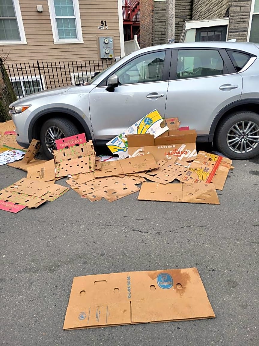 49 Bennington St, East Boston, Ma, 02128Alot of boxes that came from the churches food services have blown all over the street and on the sidewalks across the street from the church. ( code enforcement )