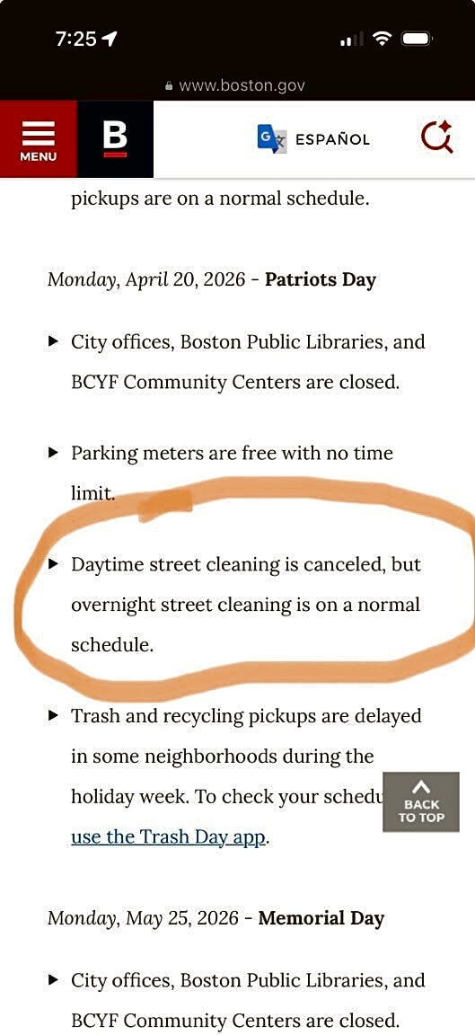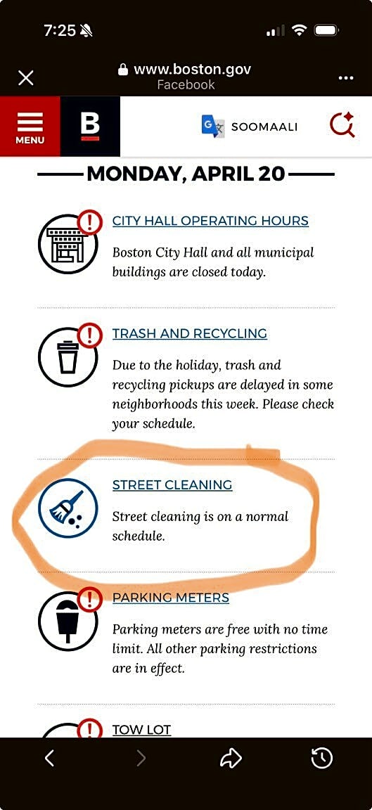 1 City Hall Plz, Boston, Ma, 02108The Boston city website is giving contradictory information about today’s street cleaning.