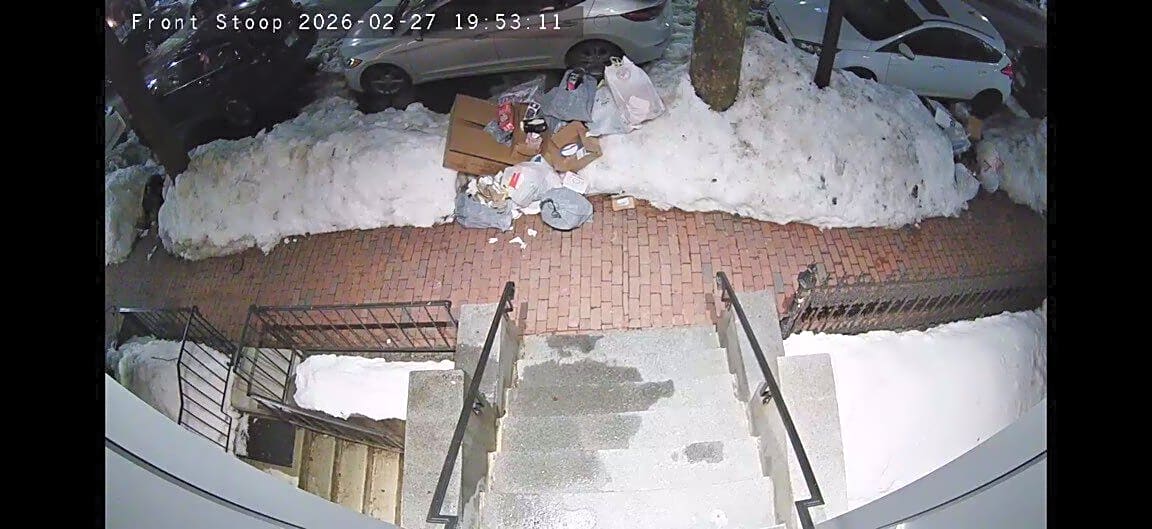 Around 7:10pm someone tore apart the trash that is outside of our building. We need a trash pickup ASAP