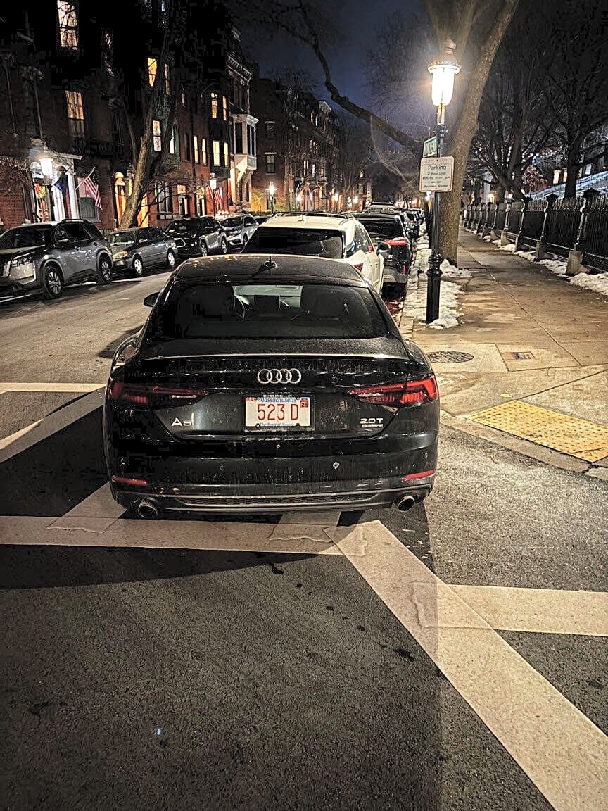 139 Pembroke St, Roxbury, Ma, 02118141 Pembroke St Boston. Black Porsche Macan resident only parking plate # 2YMM 37