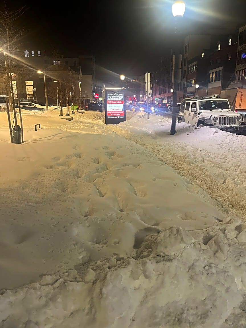 446 456 W Broadway , South Boston, Ma, 02127Unshoveled city sidewalk. Municipal parking lot and bus stop