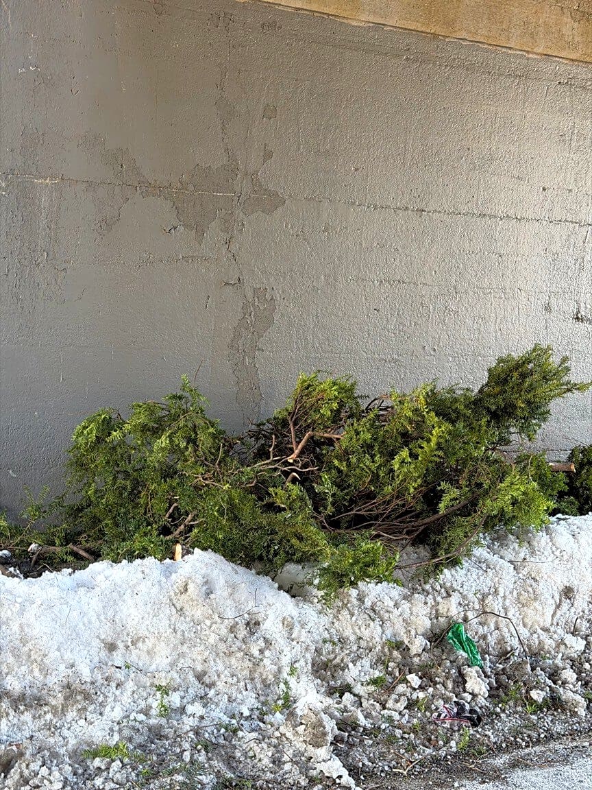 Intersection Of Conley St And Tenean St, Dorchester, MaChristmas tree that is cut up is on sidewalk. Please have Public Works remove.