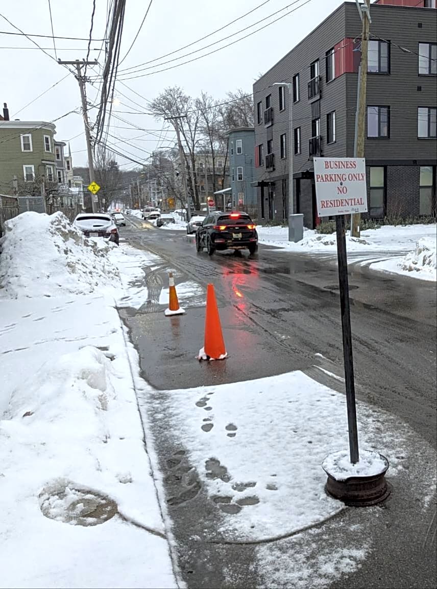18 28 Brookley Rd, Jamaica Plain, Ma, 02130The insurance agency has been reserving street parking spaces for their business.