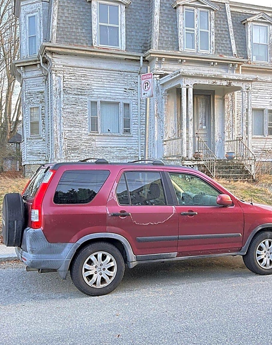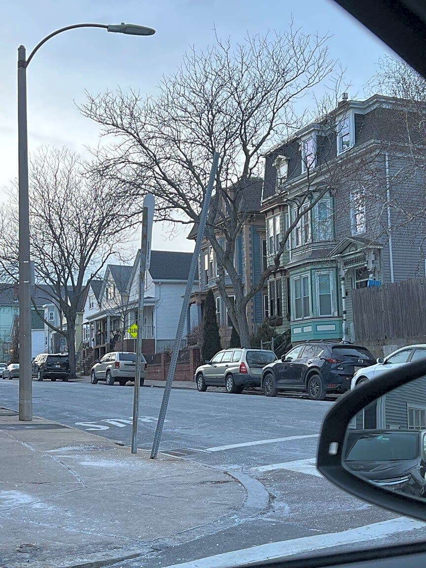 Intersection Of March Ter And March Ave, West Roxbury, MaStill parked illegally. Florida plates.