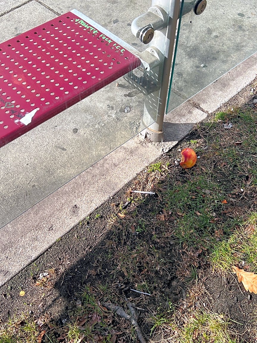 Intersection Of Alexander St And Dudley St, Dorchester, MaNeedle behind bus stop 15/41 in front of Kroc center on Dudley Street