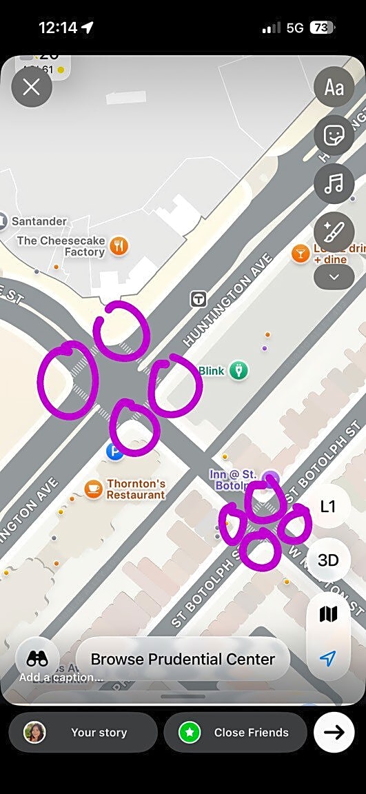 Intersection Of Belvidere St And W Newton St And Huntington Ave, Boston, MaCrosswalks need to be cleared. You can cross the street, but you cannot safely get back onto the side walk at the circled intersections.