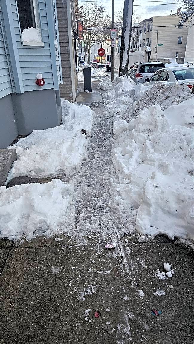 26 Mystic St, Charlestown, Ma, 0212926 Mystic has not shoveled the sidewalk at all.