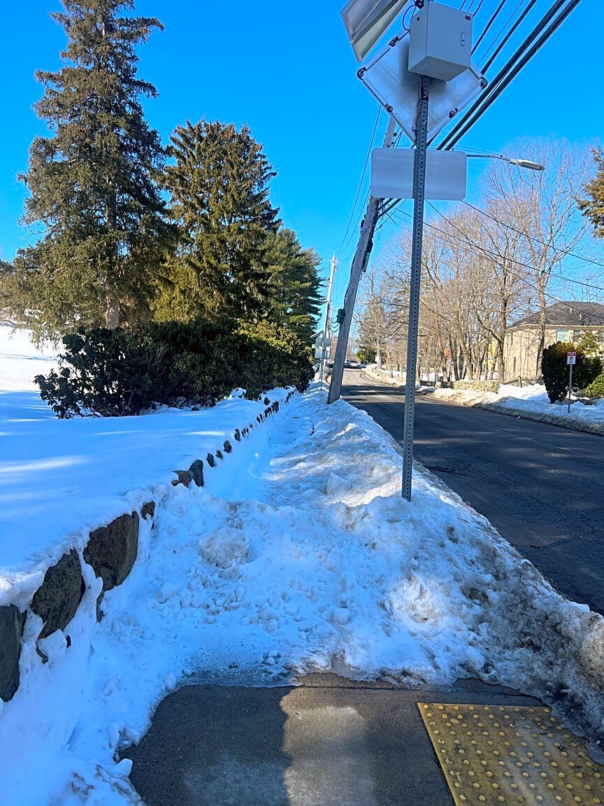 Intersection Of Neillian Cres And Pond St, Jamaica Plain, MaSidewalk not shoveled. Showa Boston. There is nowhere for me to walk but on the street on a busy road.