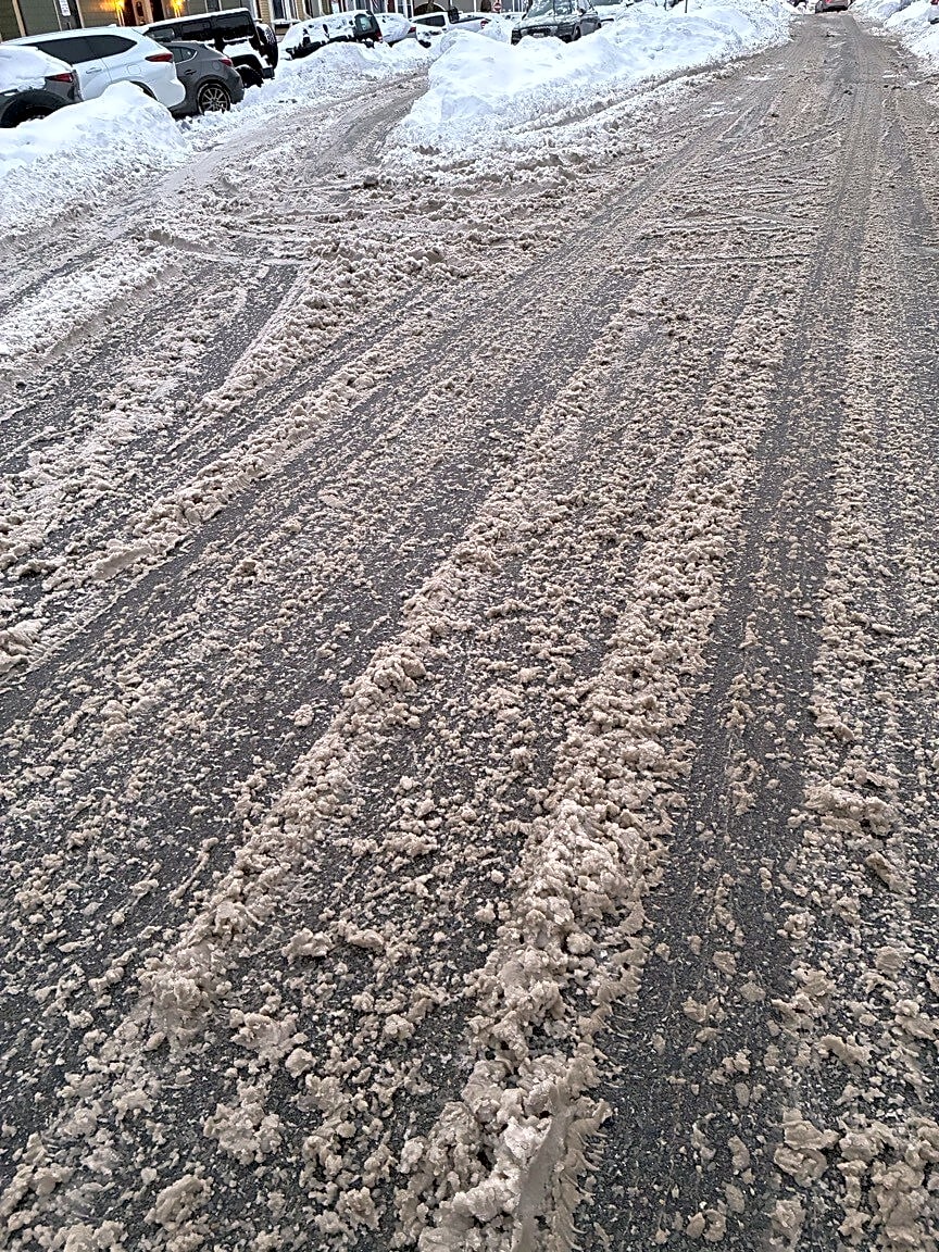 Intersection Of M St And E Fifth St, South Boston, MaThis is East 4th street in South Boston between L & M doesn’t look like plows have touched our streets since the middle of storm 1 nothing after the few inches added in Monday night and all the handicap corners are completely plowed in M & 5th has about 15 feet high snow banks on each corner almost an accident with Fed Ex truck earlier -
