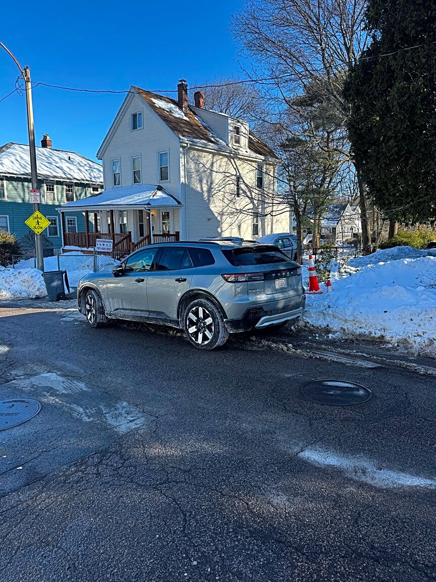 Intersection Of Sycamore St And Wilkins Pl, Roslindale, MaHonda prologue illegally parked between no parking signs MA EVDR63 2/5 2:30pm