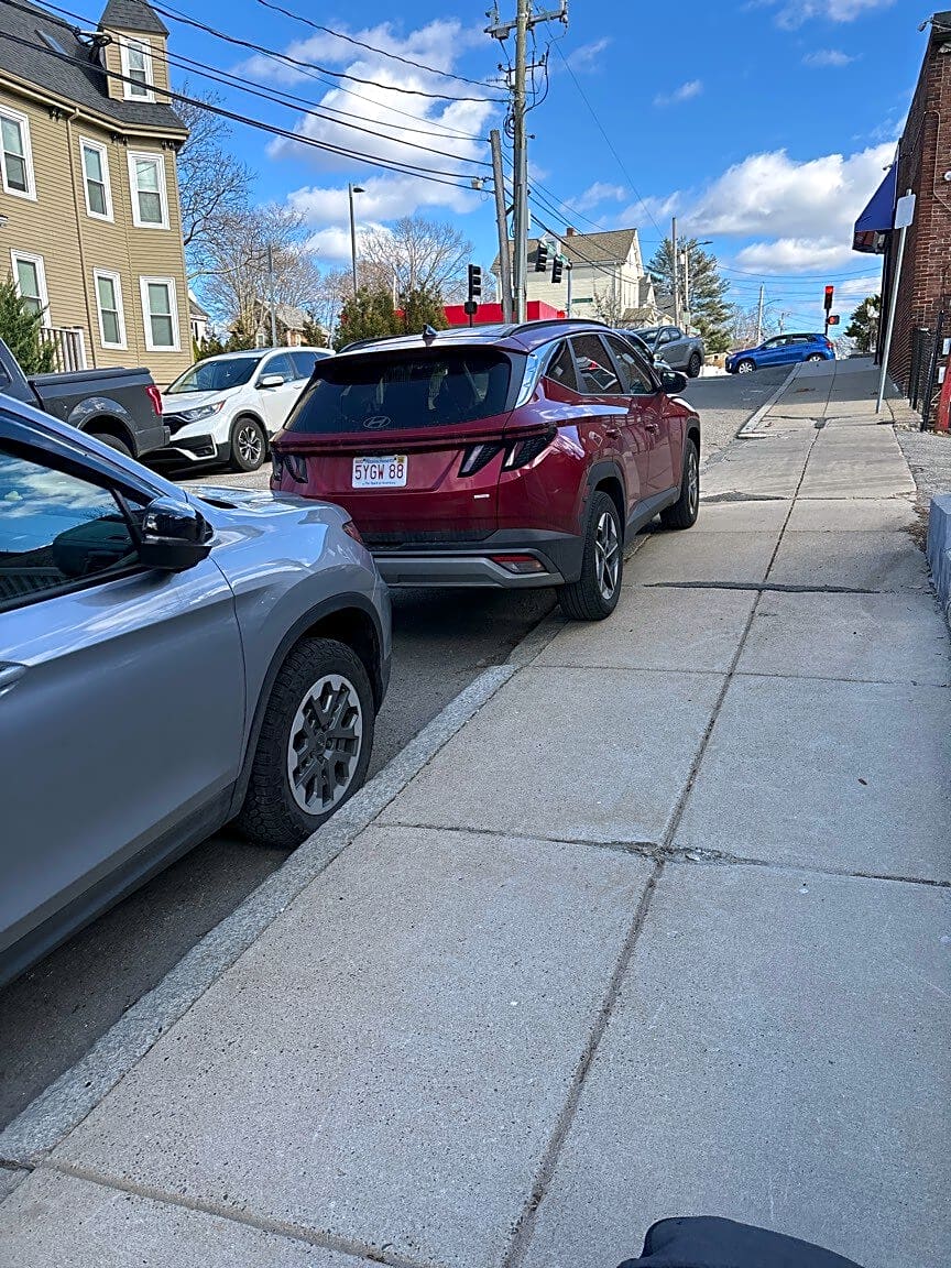 66 Albano St, Roslindale, Ma, 02131Parked on the sidewalk. Who raised these people!?
