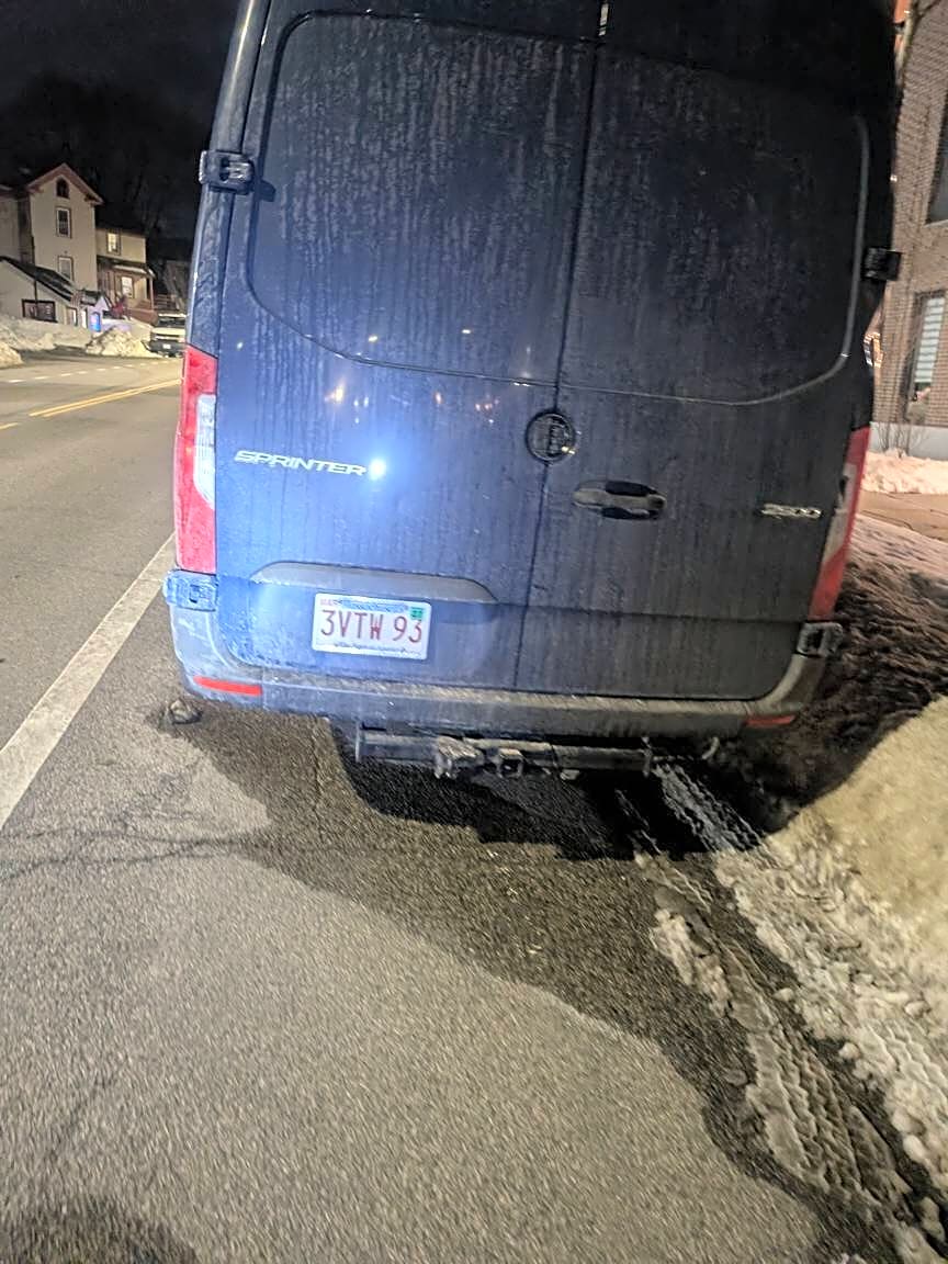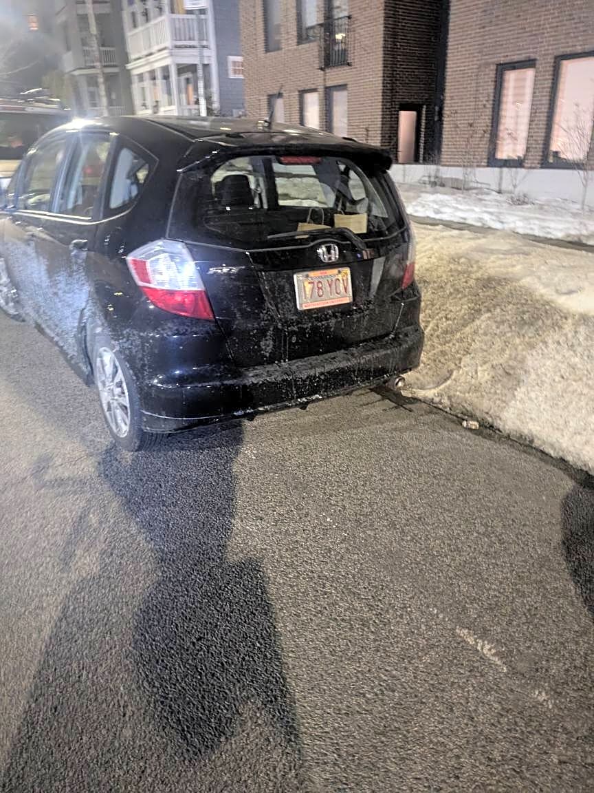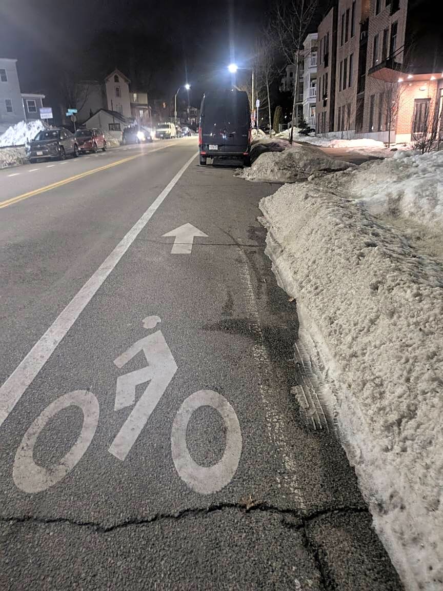 55 Belgrade Ave, Roslindale, Ma, 02131Vehicle parked partially in the bike lane instead of shoveling out the parking space.