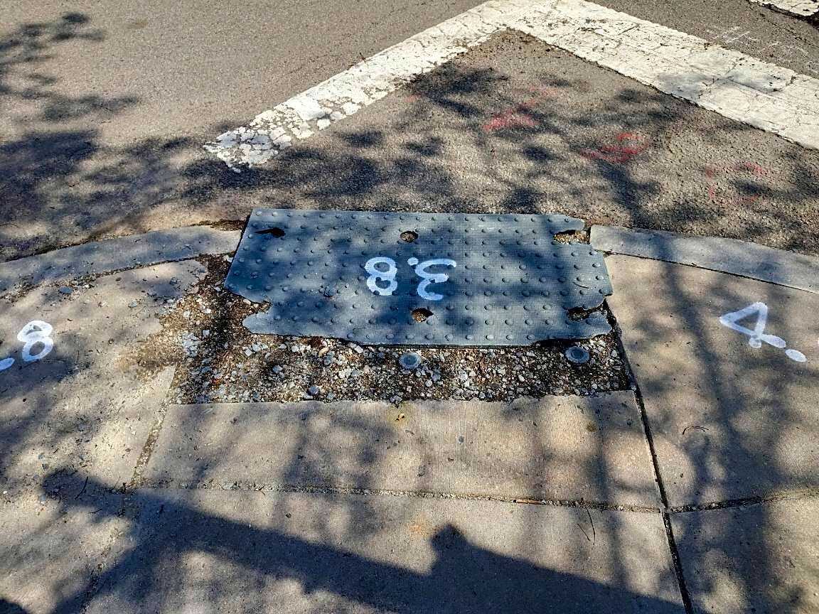 Intersection Of Charbonnier St And Charles Street Pl And Main St, Charlestown, MaCurb cut ramp broken.