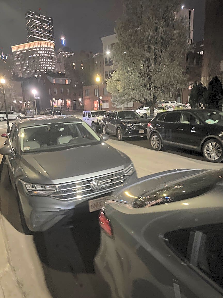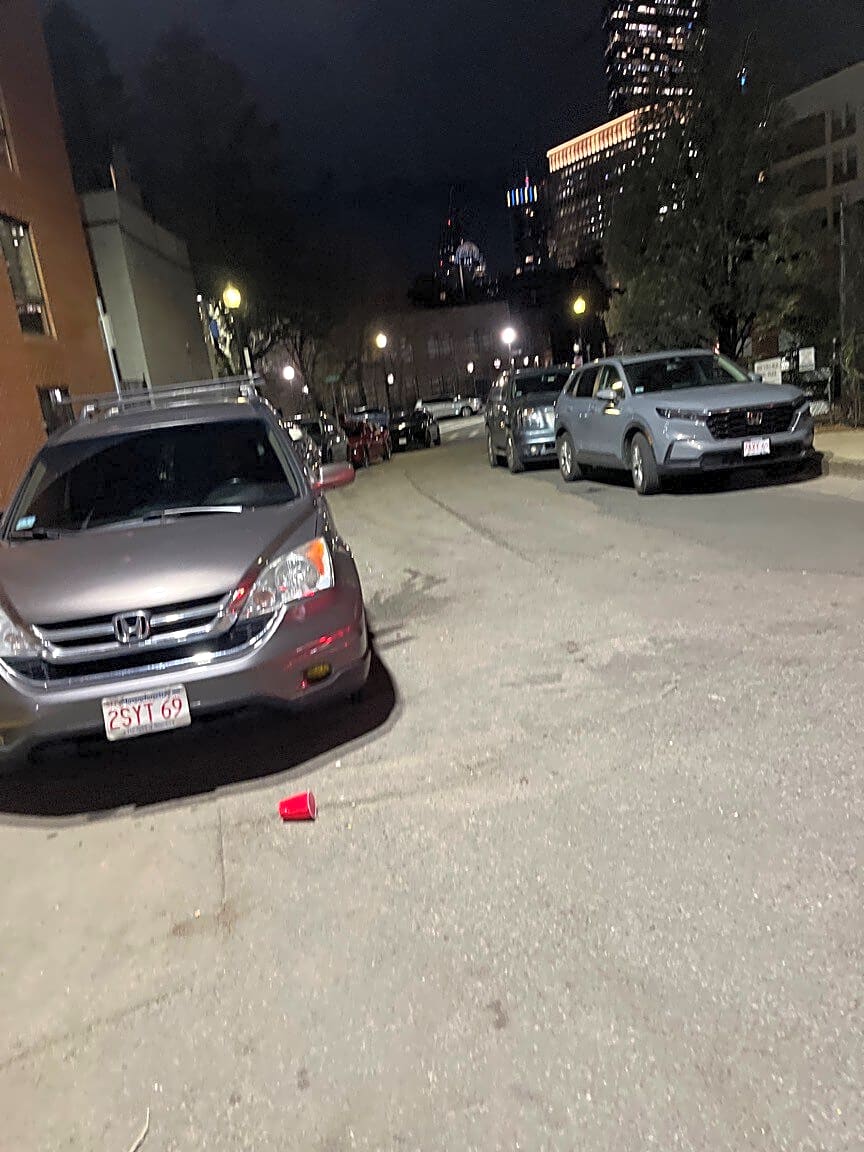 Intersection Of Elm St And Bartlett St, Charlestown, MaSomeone painted a parking line on the street to create spots.