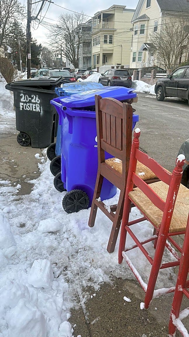 26 Foster St, Brighton, Ma, 02135Trash cans out on non-trash day blocking sidewalks with snow and ice that was not cleaned properly by homeowner