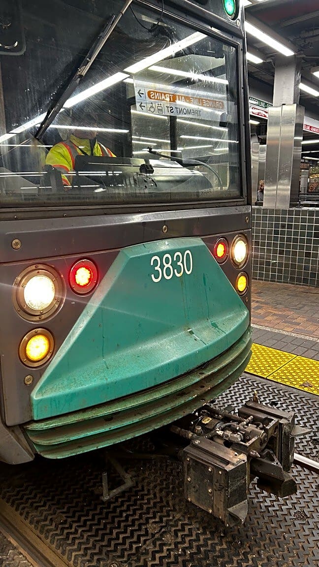 121 Tremont St, Boston, Ma, 02108Somebody spilled oil in this car between the middle two doors and is a safety hazard for the mbta to check in on. I told the operator of the train at park street.