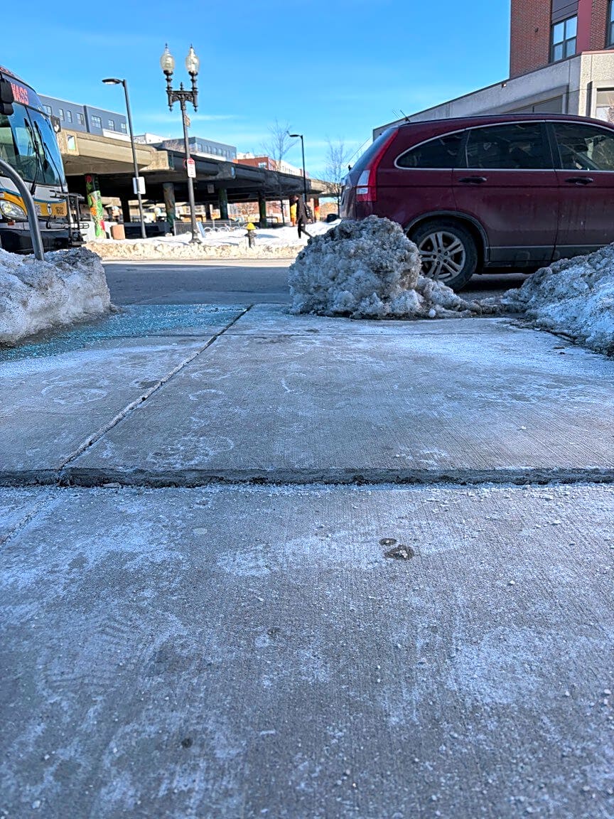 Intersection Of Appleton St And Clarendon St, Boston, MaAt the corner of Appleton and Clarendon Streets in the South End, 3 of the four ramps were destroyed by the bobcat that was moving snow piles around. They are a tripping hazard for all of the pedestrians and strollers in the neighborhood.