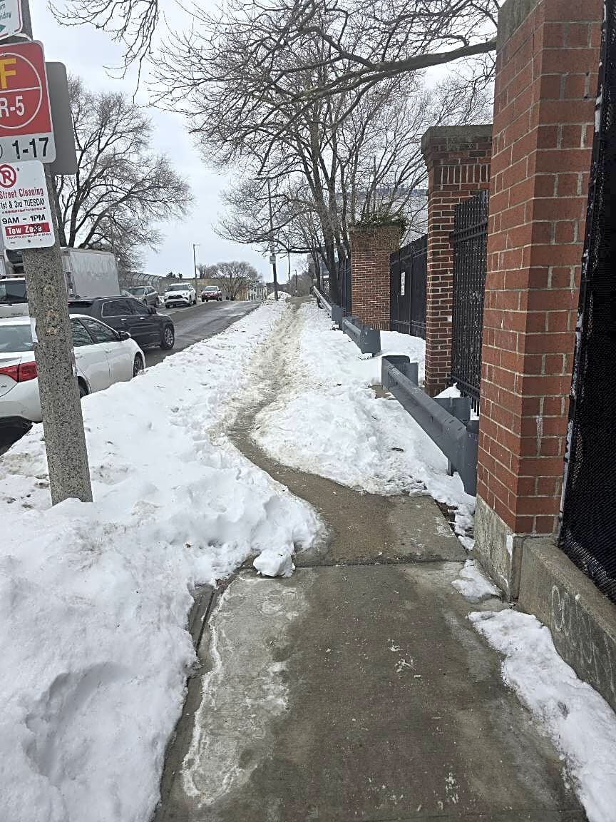 52 Boston St, South Boston, Ma, 02127Sidewalk not shoveled. This is either MBTA or city property. People are walking in the streets to avoid. This is dangerous