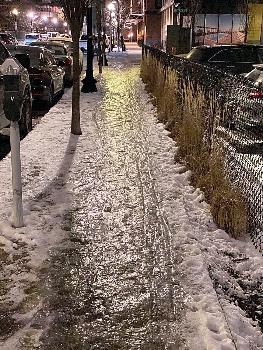 Intersection Of E Dedham St And Harrison Ave, Roxbury, MaIcy sidewalk