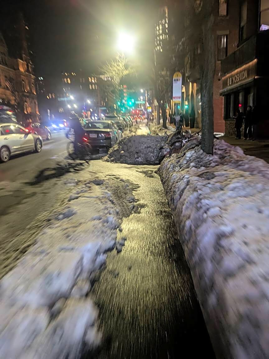 Intersection Of Public Alley No. 905 And Massachusetts Ave, Boston, MaIt appears someone shoveled snow into the bike lane.