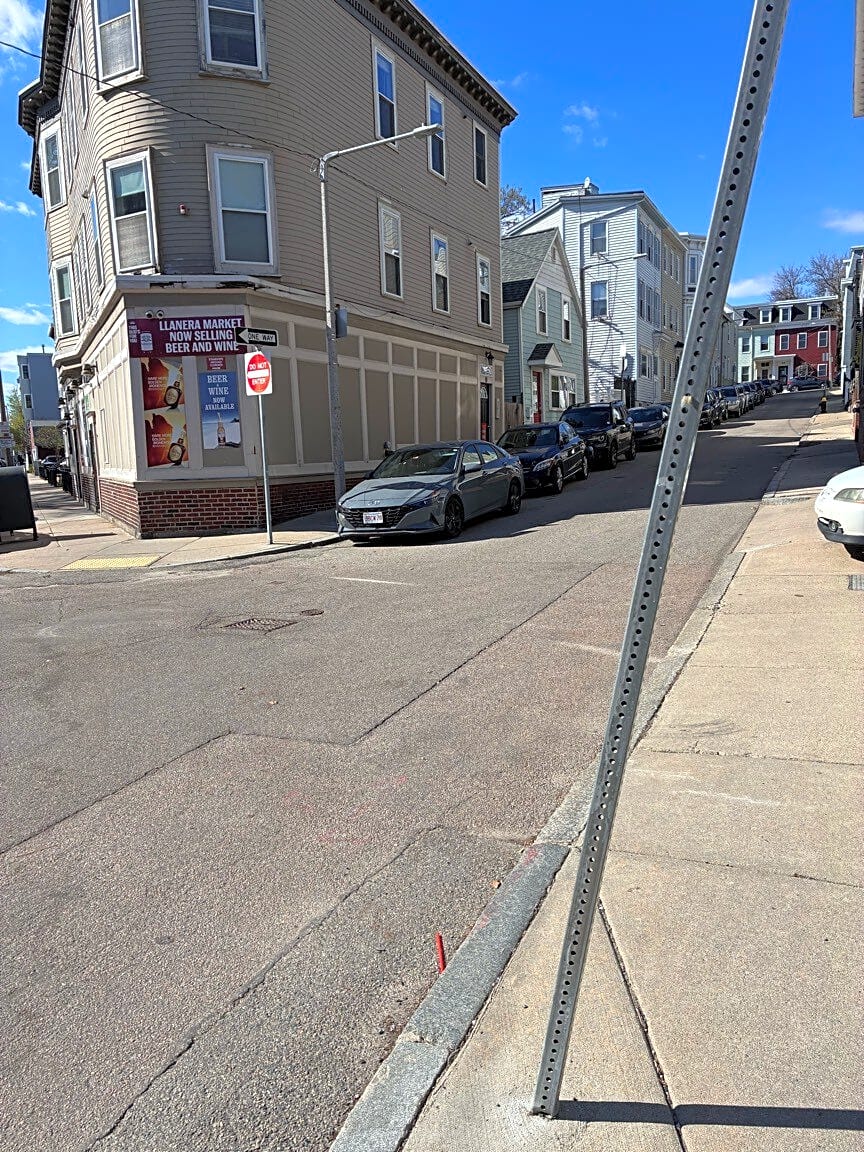 Intersection Of Knowlton St And E Eighth St, South Boston, MaMissing crosswalk and stop signs - needs to be replaced