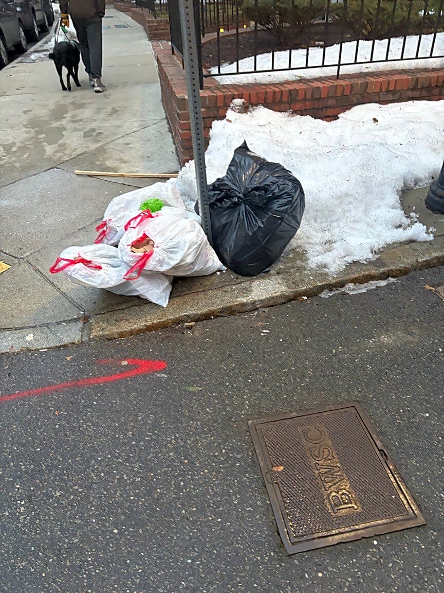 37 Beacon St, 3, Boston, Ma, 02108Rubbish is placed out in unsuitable container | Details: [constituent states this person has lots of trash out with no barrels and sometimes the bags are open causing rodents] Exact location: [front]