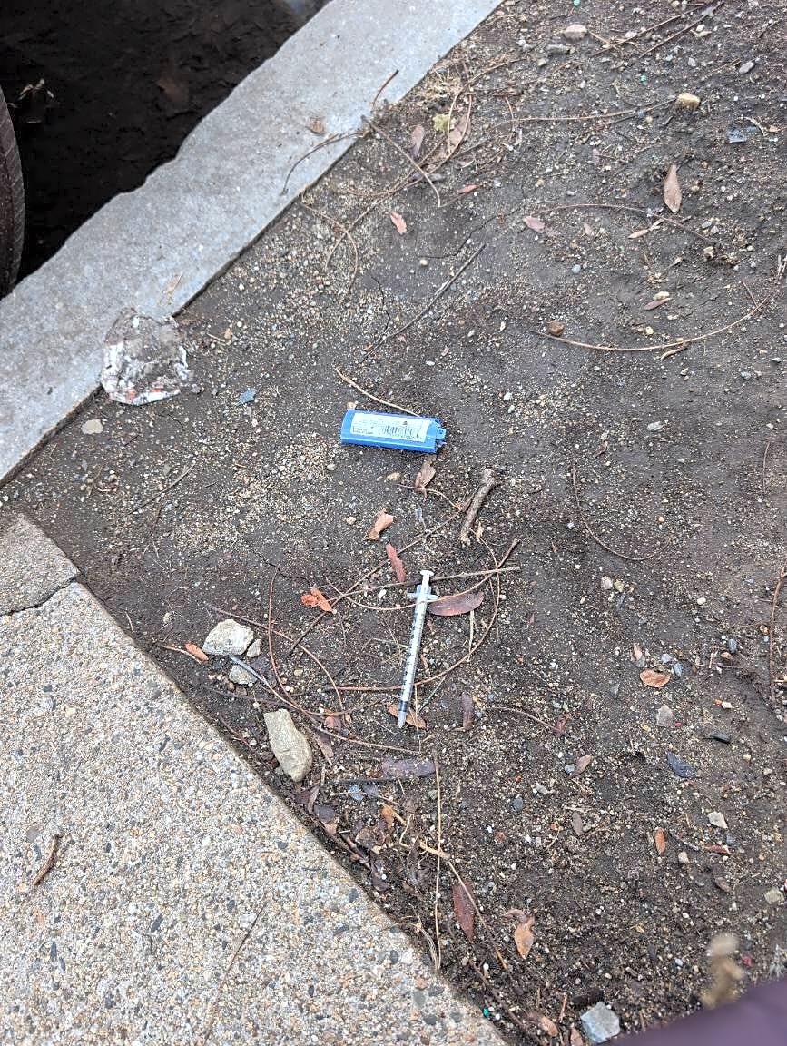 71 Coleman St, Dorchester, Ma, 02125Across the street from 71 Coleman in tree planter. Syringe.